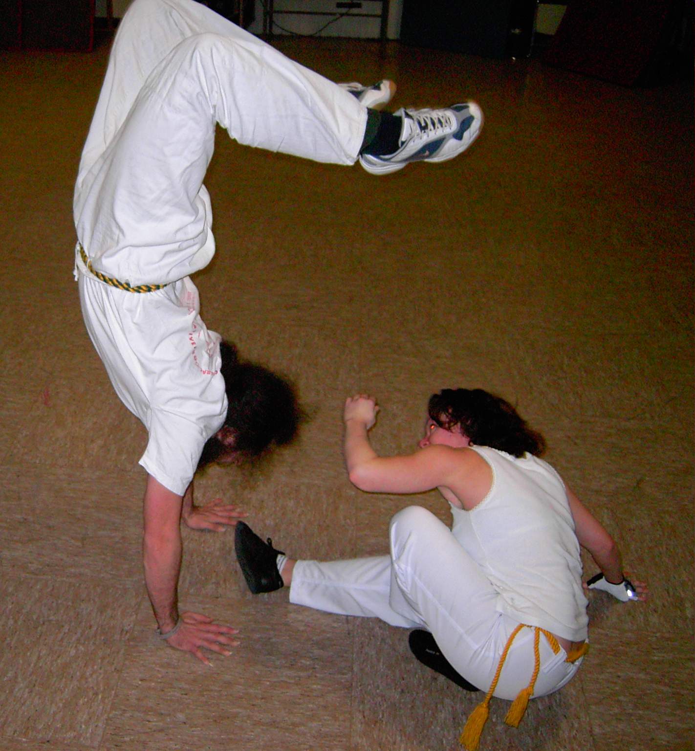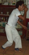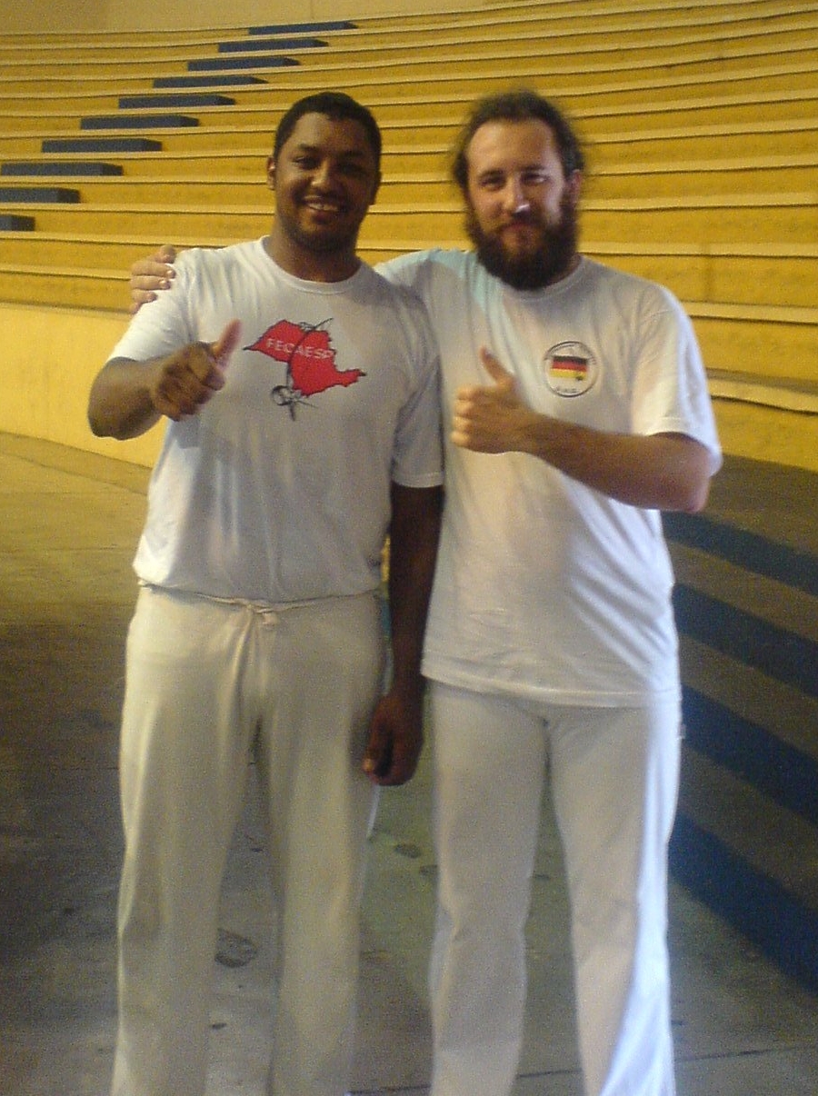 Manche von Euch wußten es vielleicht oder waren selbst da, am 13.Mai 2006 wurde in Nürnberg die erste deutsche Meisterschaft für Capoeira ausgetragen. Die Teilnehmerzahl hielt sich zwar etwas sehr in Grenzen, aber nächstes Jahr wirds sicher besser. Entsprechend trat, LEIDER!!!, auch nur ich (Sarara) für Landshut an, noch dazu in der Schwergewichtsklasse der 19 bis 29 Jährigen. Da traf ich dann auf einen sehr netten, jungen Kerl aus München von Capoeira Contemporana, gegen den ich zwar im Angola noch einen geringen Vorsprung aufbauen konnte, den er aber dafür im Reginal mehr als wett gemacht hat. Das Ergebnis sieht nun so aus, das in Landshut seit dem 13.Mai 2006 der deutsche Vizemeister im Capoeira das Training gibt. Also wenn das kein Ansporn ist endlich, oder auch wieder ins Training zu kommen oder auch nur reinzuschnuppern, dann weiß ich auch nicht weiter. Eins ist sicher, nächstes Jahr trete ich wieder an, und dann hoffe ich auf mehr Teilnehmer in allen Klassen und aus viel mehr Gruppen. Also bis zum nächsten Mal. Axé!